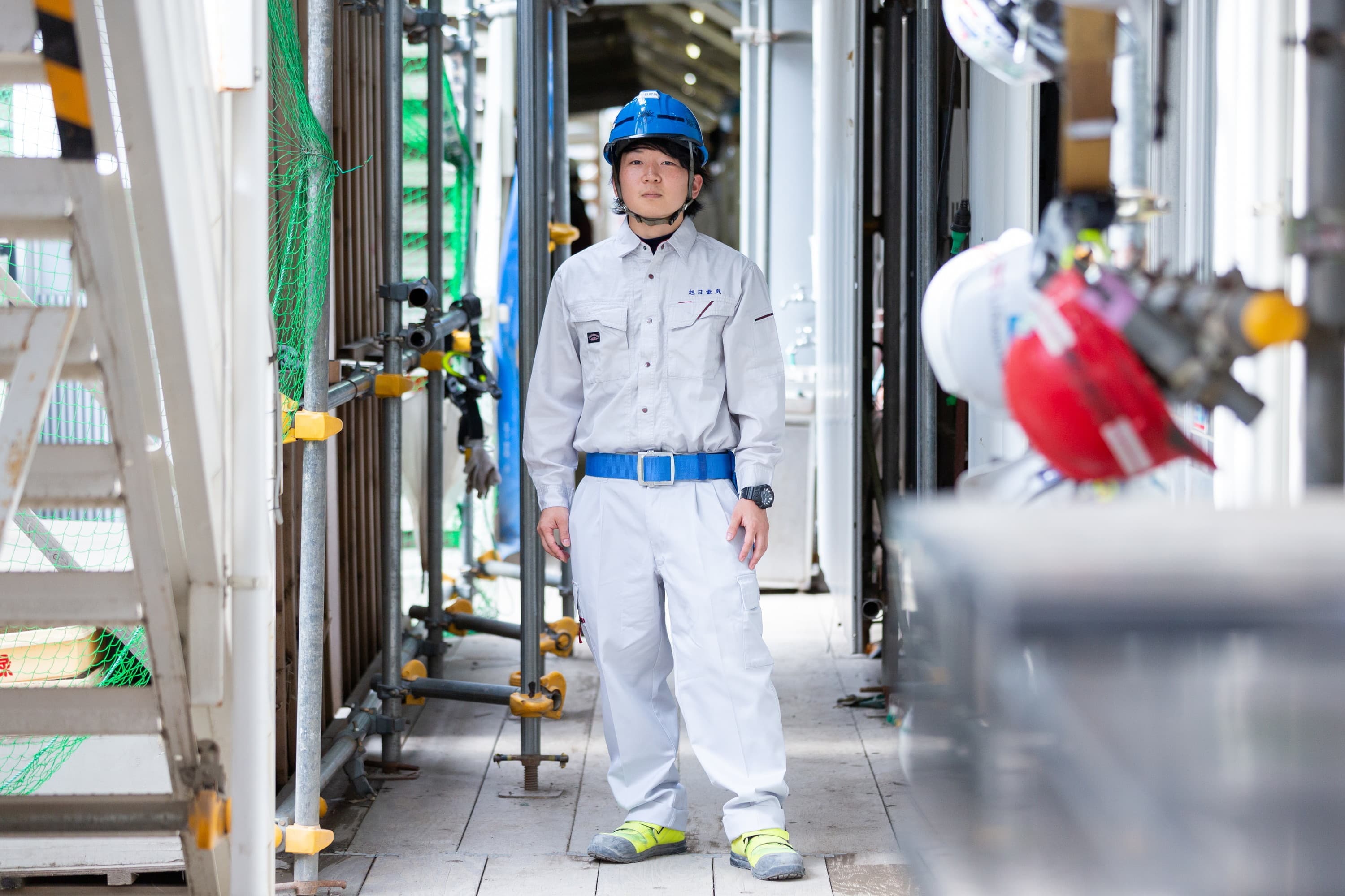現在は、晴海にあるオリンピック関連施設の現場で仕事をしています。前日に作成した資料をもとに職人さんと打ち合わせをしたり、担当の現場を見て回りながら、工事の進捗などを監督していく施工管理が中心です。 関連施設2棟のうち、私は主任として1棟の現場を担当。来年の本番を控え、オリンピックの関連施設の建設工事は注目を集めている現場でもあり、みんな仕事のモチベーションは上がっています。実際の作業では、建築であればコンクリート打設、電気のケーブルのルートを造るための配管工事など、他職種の人たちとの円滑な連携が欠かせません。意思の疎通を上手にとりながら、当社の管轄である電気工事を工期に沿って進めていきます。現場の職人さんは、確かに強面の人もいますが(笑)、話してみたら紳士な人が多いんですよ。お互いの気持ちが通じ合う中で一緒に作業を進めていくのは楽しく、すべての工程をクリアして、電気が通って建物が完成したときには格別の達成感があります。現場の職人さんから、「頑張ったな」「ありがとう」と言葉をかけてもらったときは、すべてが報われるようなうれしさがありますね。